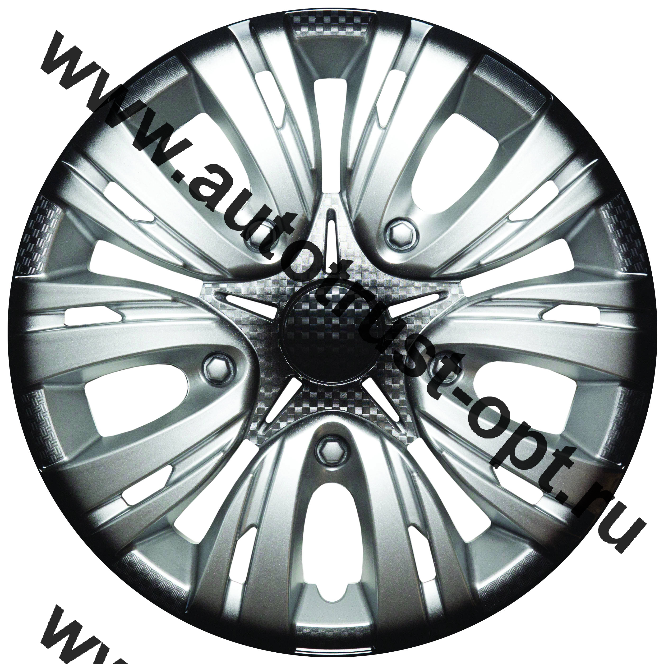 "АКС авто" Колпак декоративный ЛИОН серебристый (пруж.) карбон 15" (2)