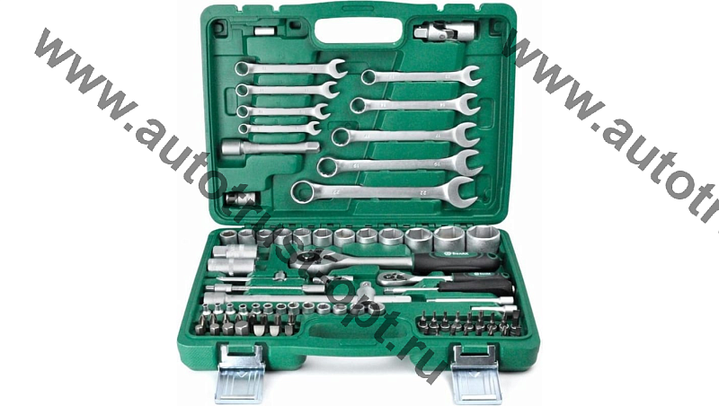 Прочные металлические замки и эргономичный ударопрочный кейс чемодан, делают набор головок с трещоткой более эффективным и мобильным. -