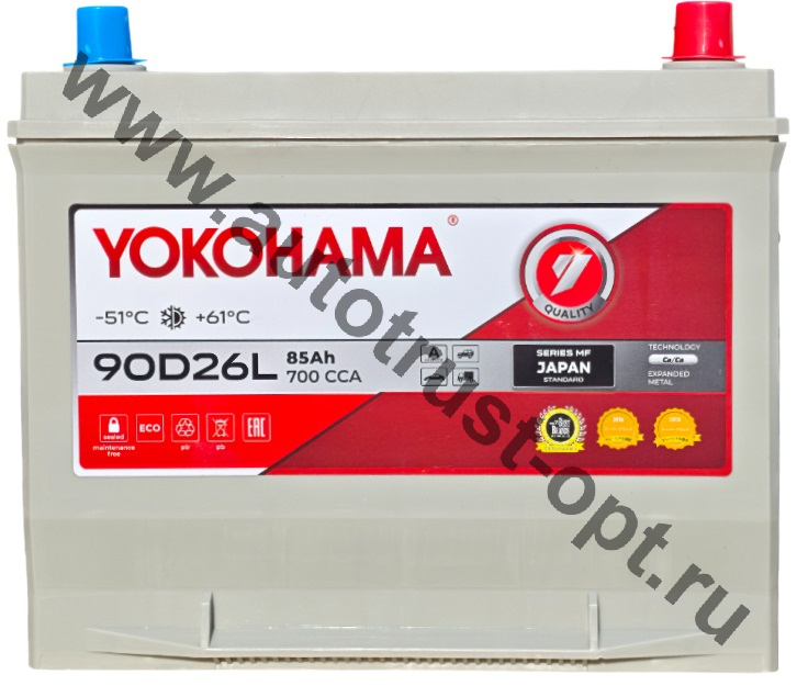 АКБ YOKOHAMA 90D26L 85 а/ч CCA 700 (260*173*220)