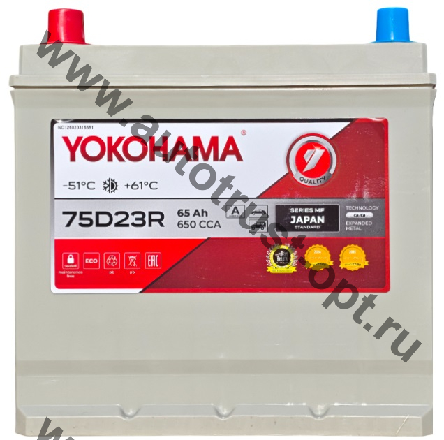 АКБ YOKOHAMA 75D23R 65 а/ч CCA 650 (232*173*220)