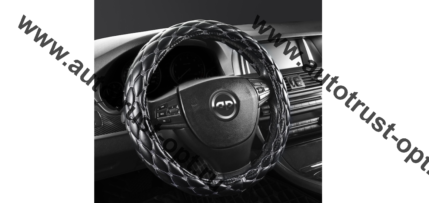 Оплетка рулевого колеса,PU-экокожа,наполнитель поролон,ромб прострочка, ,черный/серебряна нить (М)